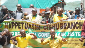 In a dramatic show of dissatisfaction, members of the Kenya Union of Post-Primary Education Teachers (KUPPET) in Uasin Gishu County...