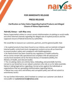 By Robert Assad Naivas Supermarket has moved swiftly to address what it terms as “false and misleading” claims circulating on...