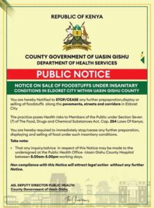 In a decisive effort to safeguard public health, the County Government of Uasin Gishu has issued a stern directive to...