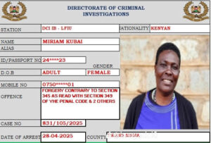 Miriam Kubai, acting under a power of attorney for the Leseru Tebeson Farmers Society, has been formally charged with forgery...