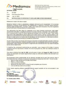 By Robert Assad Mediamax Network Limited has announced plans to declare a number of employees redundant as part of an...
