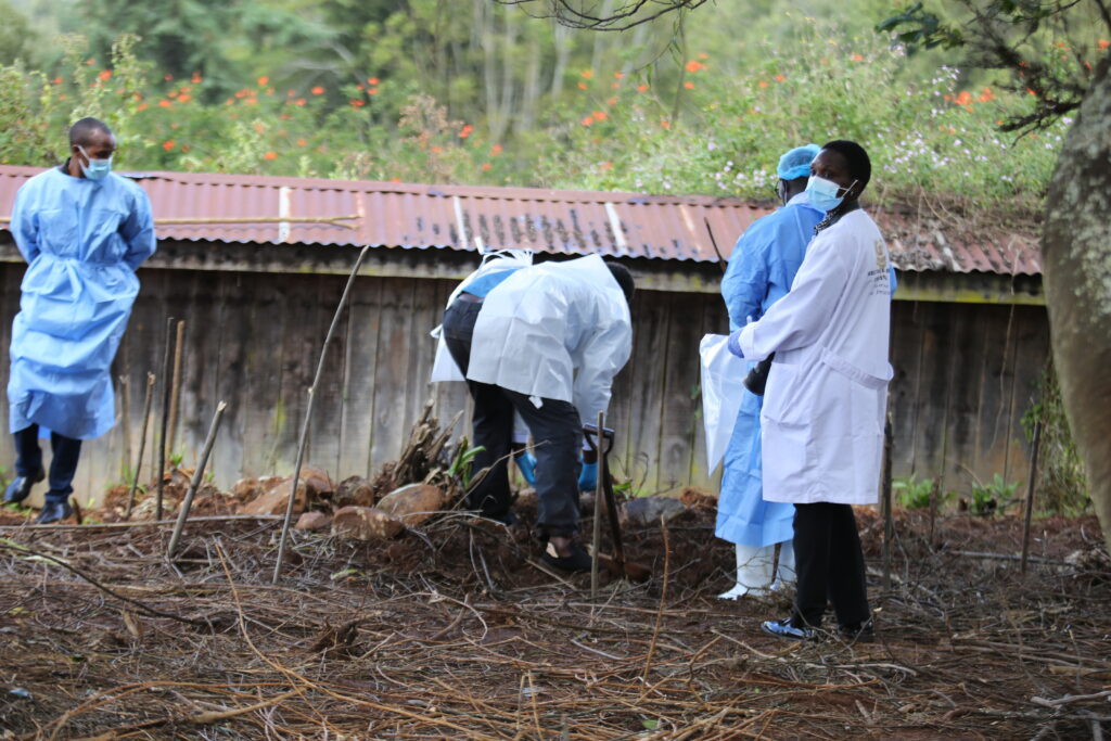 The two-hour operation was carried out by homicide police officers from the Directorate of Criminal Investigation, Iten police station, following a court order obtained to excavate the site.