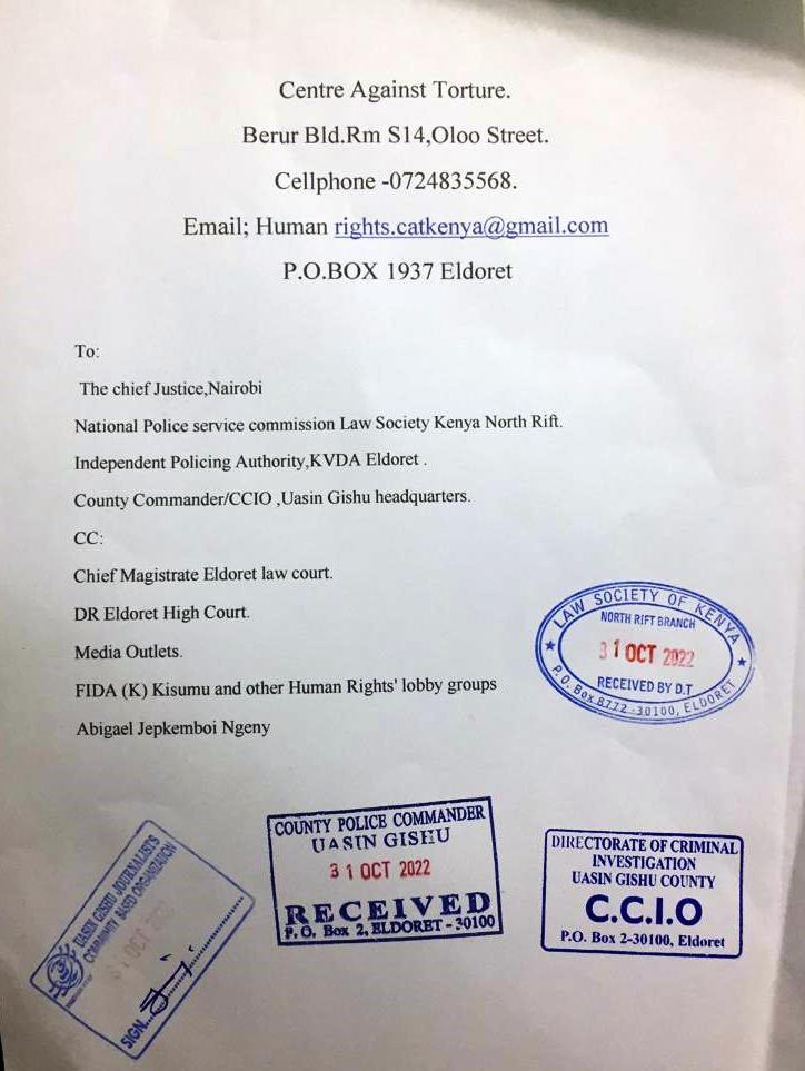 “Abimael has recorded over four OB Numbers on various days and months but unfortunately the Police at The Langas police Station led by The Ocpd have turned a blind eye on her plight, She has been forced out of her matrimonial Home, threatened , she has been currently forced to live a miserable life of abject poverty and despite the efforts to seek assistance from this station no help ha come her way,”Said Kirui.
