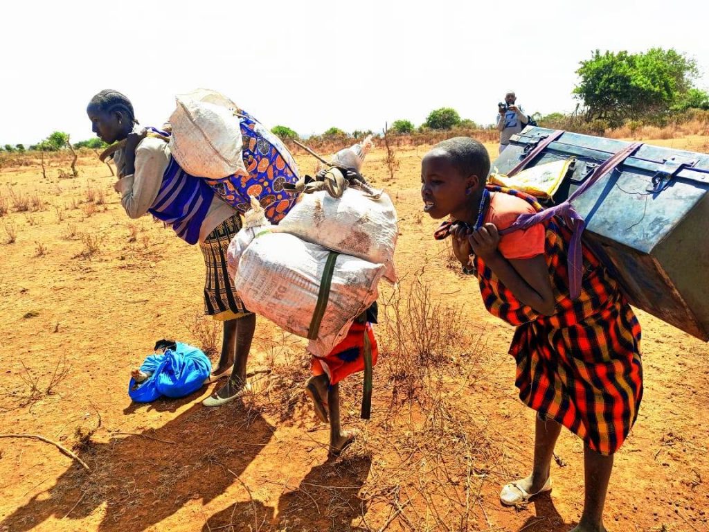 Families dislodged from their homes in Longewan Village Samburu County fleeing to unknown destination/Photo Courtesy