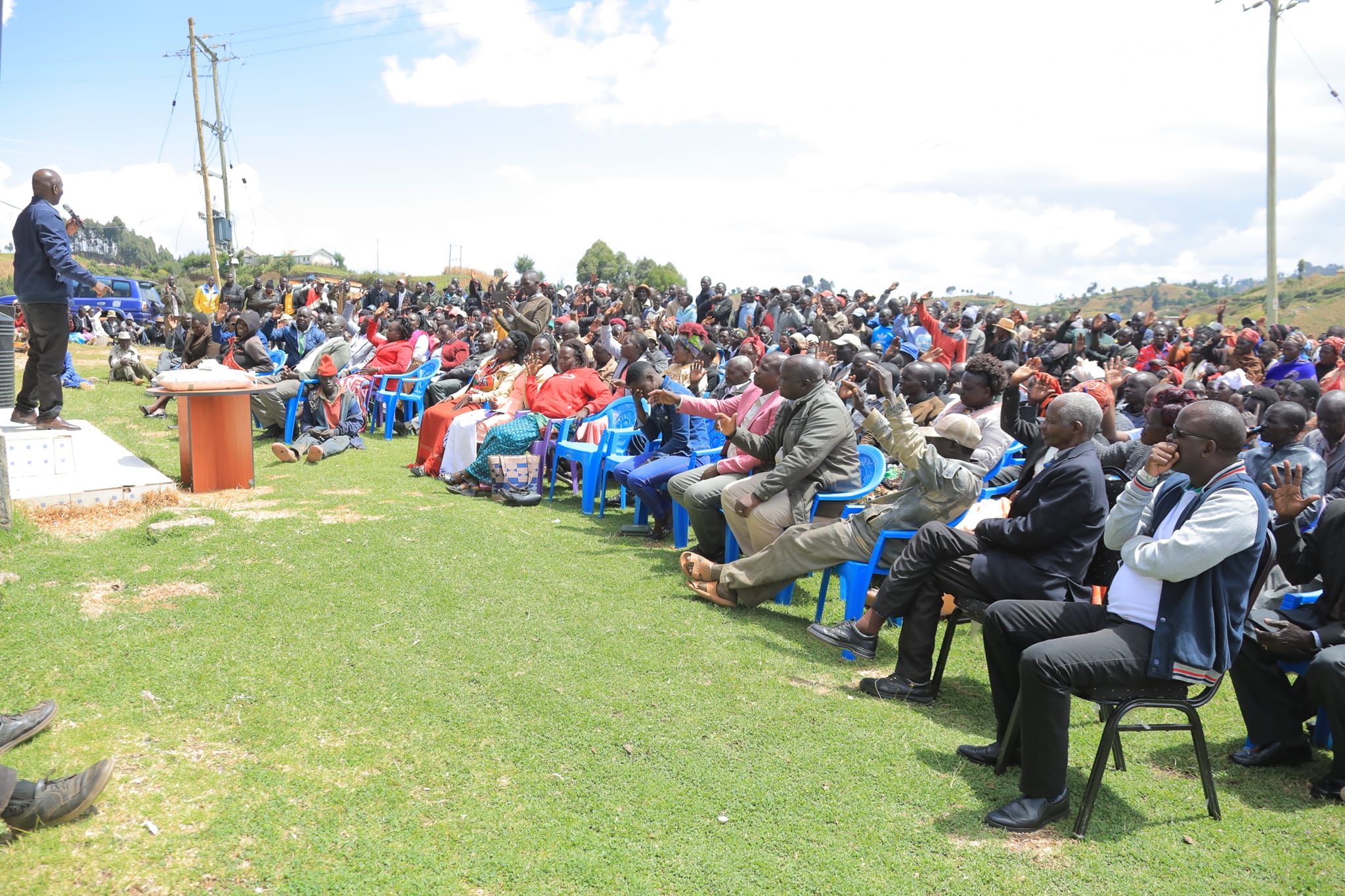 H.E Governor Wesley Rotich with a section of pyrethrum Farmers in Elgeiyo Marakwet County.