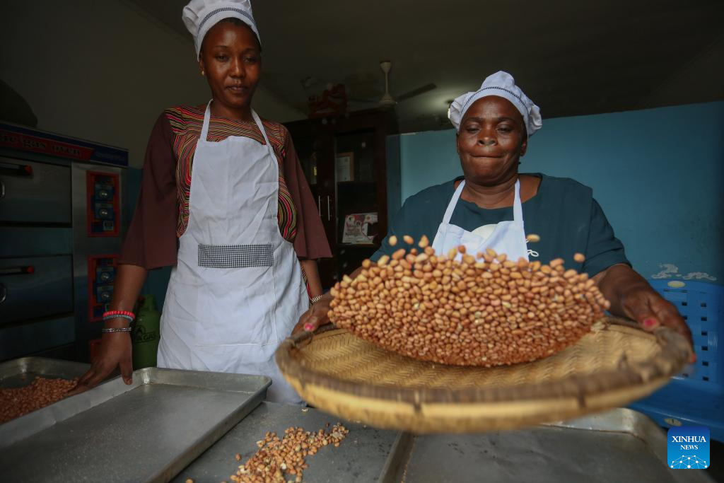 A FUWAVITA member produces peanut butter at the organization’s workshop in Dar es Salaam, Tanzania, Sept. 23, 2025. (Photo by Emmanuel Herman/Xinhua)