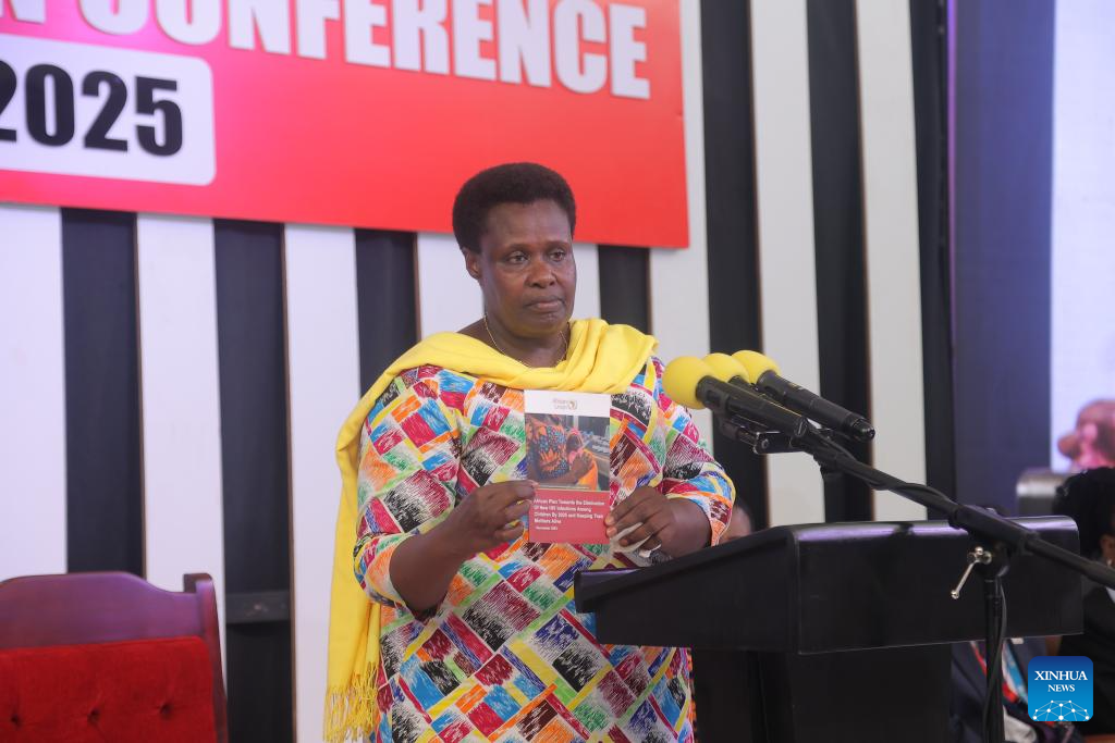 Ugandan Vice President Jessica Alupo speaks on behalf of Ugandan President Yoweri Museveni at the Triple Elimination Conference in Africa 2025 in Kampala, Uganda, on July 21, 2025. Health experts, policymakers, and researchers on Monday began a three-day meeting in Kampala, the Ugandan capital, to accelerate the elimination of mother-to-child transmission of HIV, syphilis, and hepatitis B across Africa. (Photo by Patrick Onen/Xinhua)