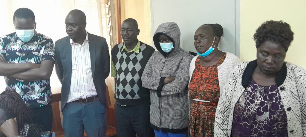From right_Nancy Talai, Margret Talai,Lydia Talai,Simon Talai,Philemon Kiptoo and Collins Talai (KDF officer) in Eldoret court.