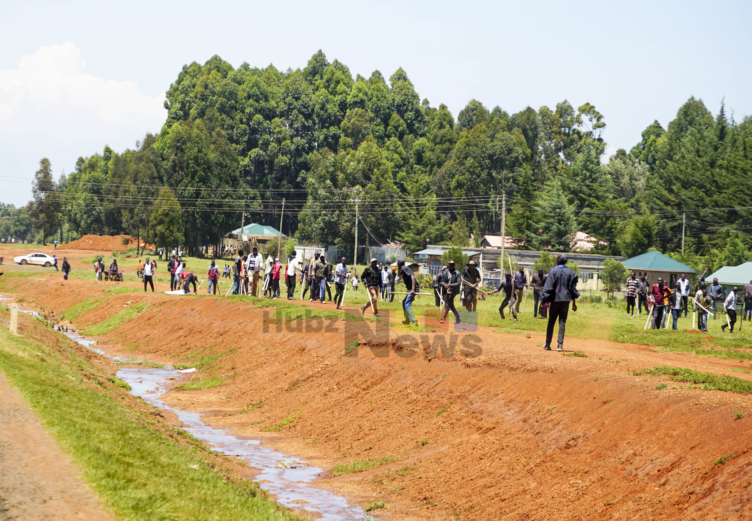 Youth allied to MP Oscar Sudi, armed with rungus, confront protesters along the Southern Bypass. Photo: Kemuma Achieng.