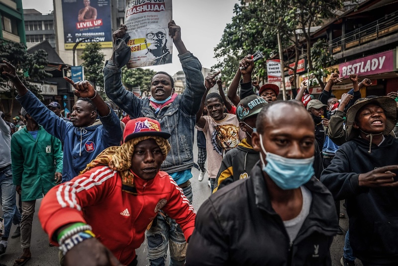 LKS 20250625 Demonstrators march in downtown Nairobi on June 25, 2025 during a planned day of protest marking the first anniversary of the storming of the parliament. Kenya was on high alert on Wednesday as it marked a year since thousands stormed parliament at the peak of anti-government protests, with fears that memorial marches would be met by state-backed gangs and police violence. At least 60 people were killed by security forces in weeks of protests over tax rises and anger about the dire economic situation for many young Kenyans. The families of victims and activists have called for peaceful demonstrations on Wednesday to mark a year since the deadliest day of the unrest when parliament was invaded. LEHTIKUVA / AFP, AFP / LEHTIKUVA / LUIS TATO