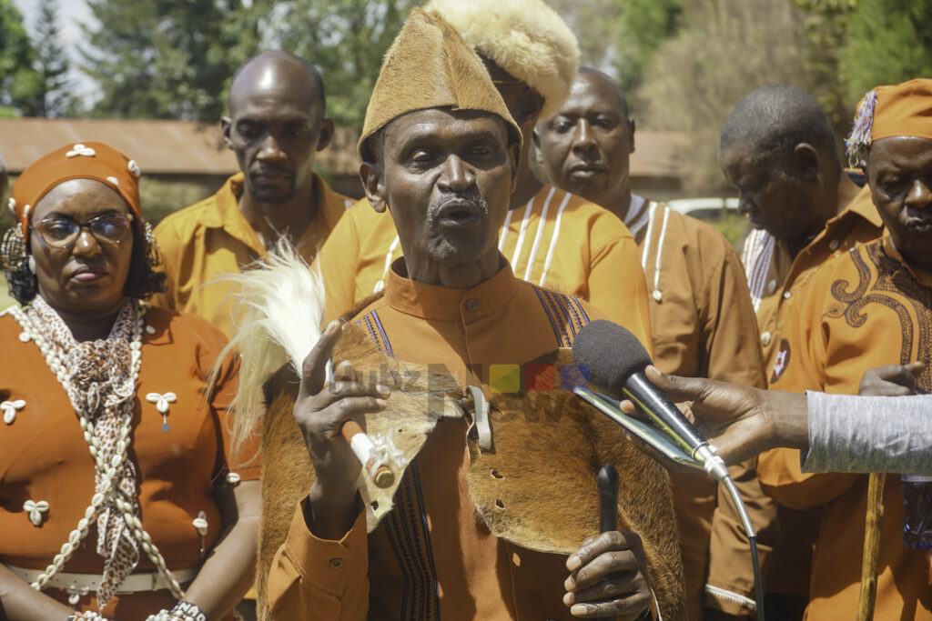 Kikuyu Council of Elders, led by Chairman Mwangi, address the media on safeguarding youth and preserving cultural values. Photos by Kemuma Achieng.