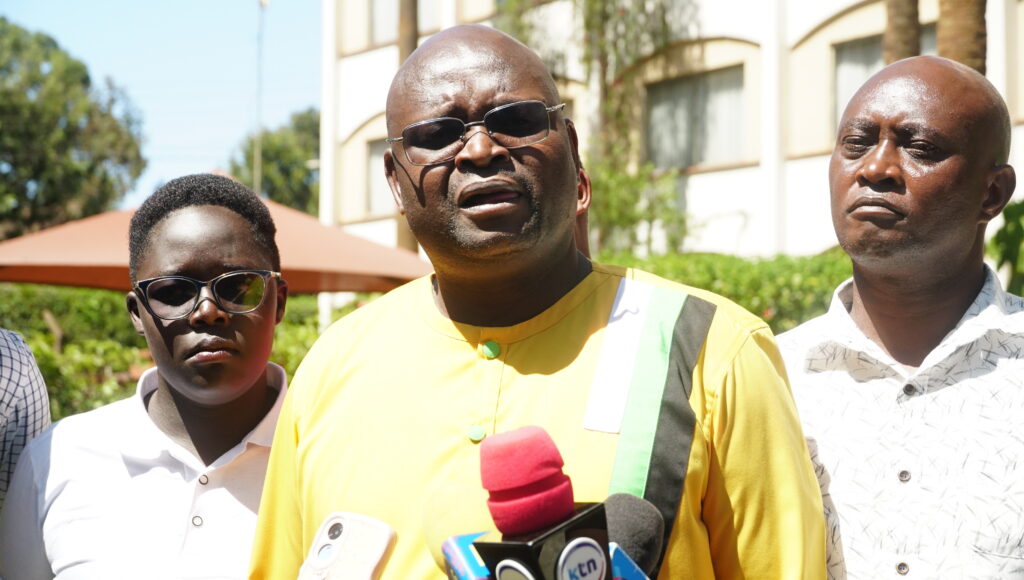 The Secretary General of the Kenya National Union of Nurses (KNUN), Seth Panyako, speaks to the media in Eldoret on Monday.
