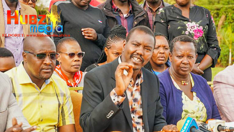 Senator Jackson Mandago addressing the media at a past event in Eldoret of the Scholarship saga/Hubzmedia
