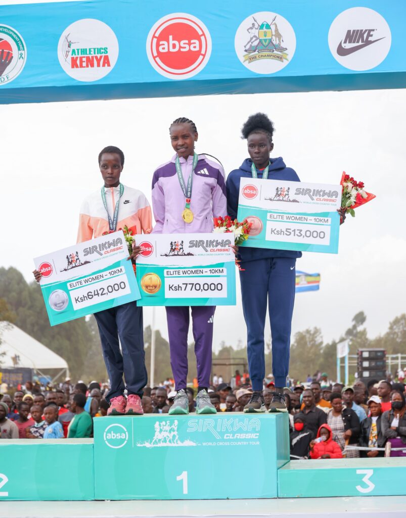 World cross-country champion Agnes Ngetich delivered on her promise by successfully defending her crown at the fifth edition of the Sirikwa Classic World Cross Country Tour held in Eldoret.