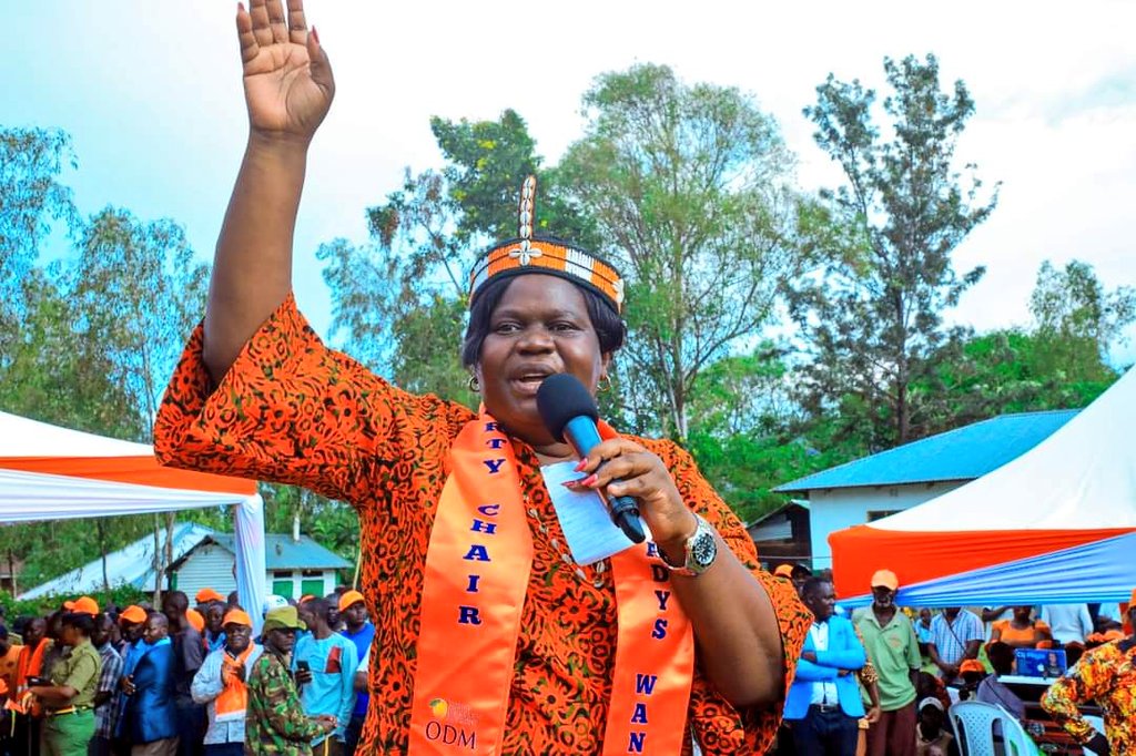 ODM National Chairperson Gladys Wanga addresses supporters during a recent event, reaffirming the party’s position ahead of coalition talks. Photo/Courtesy