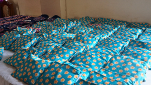 A package of reusable sanitary pads is displayed by Khayange Wasike of the Lugari Community Resource Centre./George Misati