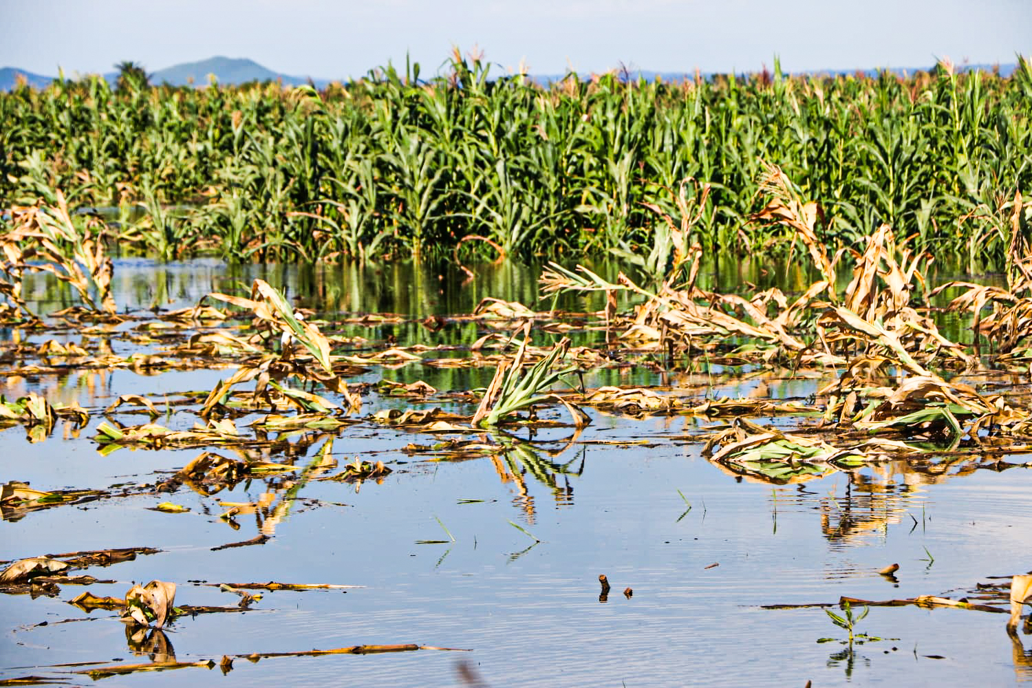 The floods have washed away crops in over 8,000 acres of farmland, submerged homes and schools-