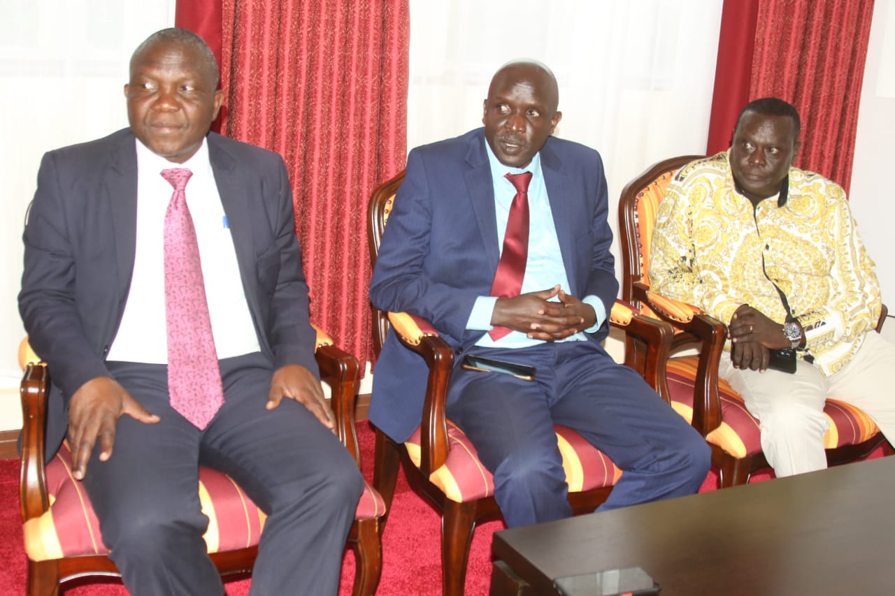 Uasin Gishu County Commissioner Eddyson Nyale(L) Acting County Chief Officer, Dr Evans Kiprotich (C)