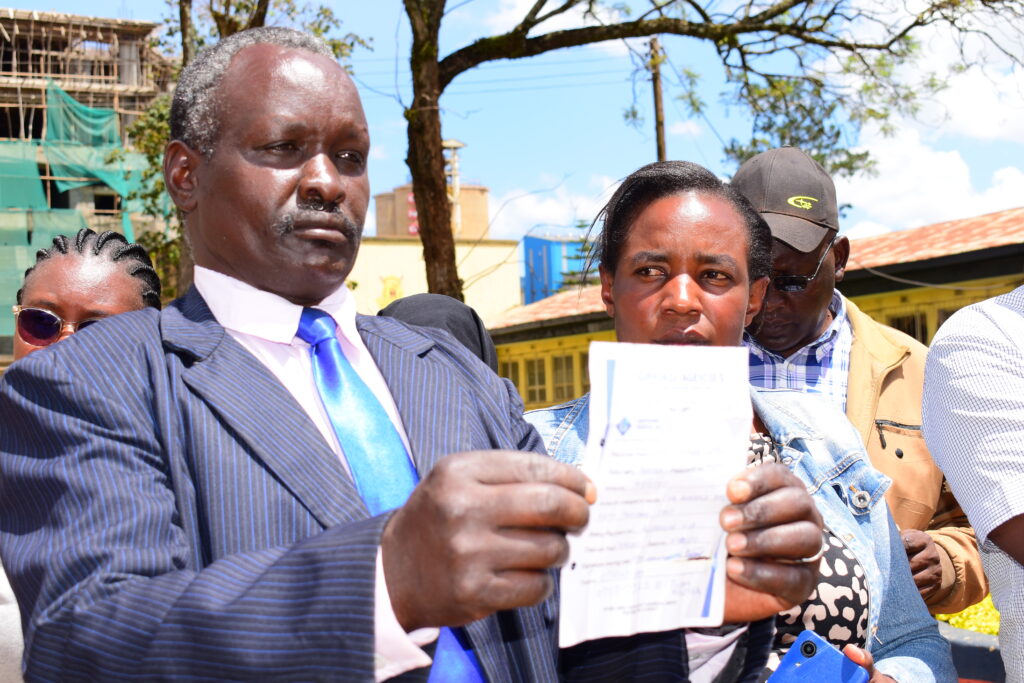 Timothy Kiyego Limo, one of the victims defrauded by Gifford Agencies, addressing the media at Eldoret Central Police Station on Sunday
